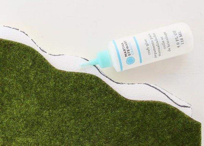 3. Шаблон из пенополистирола кладется на искусственный мох, обводится по полученному контуру и вырезается.