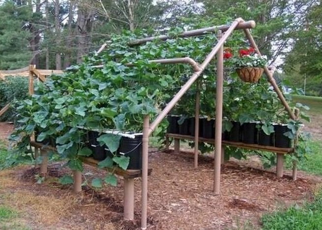Для огурцов можно возвести арку из любых подручных строительных материалов. Вы все равно подвязываете огурцы. Создайте для них оригинальную перегородку.