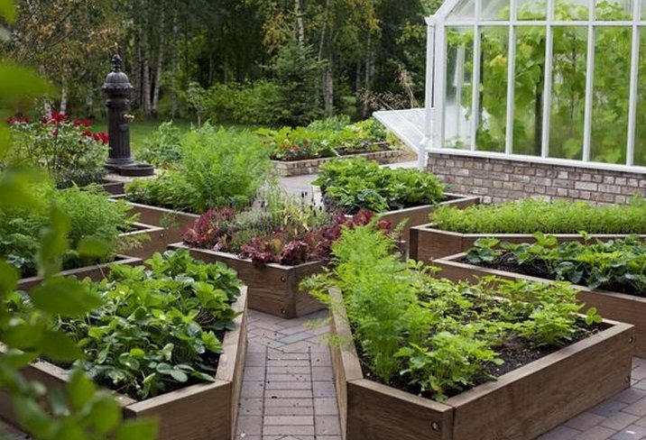 Эффектно смотрятся грядки в несколько ярусов. Их сооружают с применением дерева или других декоративных заборчиков.