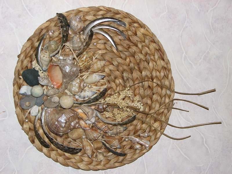Жидкие гвозди наносят на фанеру полосами и приклеиваем к ним пробки таким образом, чтобы они чередовались по цвету и размеру или составляли некий рисунок. Когда весь лист фанеры будет заполнен, пробки сверху покрывают мастикой, которая придаст поверхности блеск и поможет сохранить цвет на долгое время. Такое же панно можно изготовить из ракушек и камешков.