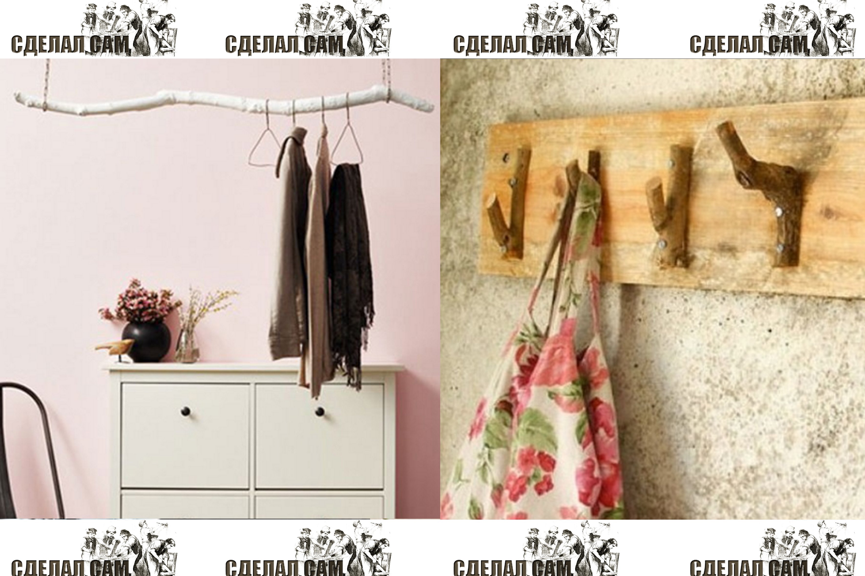 Входя в прихожую, приятно повесить свое пальто прямо… на дерево. Это отличное решение для квартир, в которых недостаточно места для встроенного шкафа или гардероба в прихожей. А если подобрать ровные ветки, вскрыть их лаком и добавить металлический крючок посередине, получатся удобные плечики для платьев или костюмов.