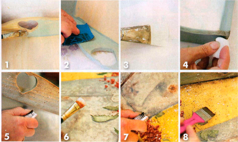 4. Углы и торцы подноса тонируем патиной с помощью поролонового спонжа или губки.
