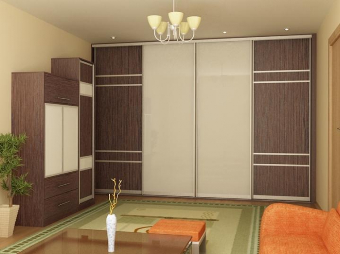 На самом деле нужно было просто заказать стильный стол с подвесным шкафом и предусмотренным местом для микроволновой печи и чайника. Компактный и оригинальный раздвижной стол для обеда. Все рассматриваемые варианты готовых моделей никак не подходили по габаритам. Решил пойти по пути наименьшего сопротивления и заказал мебель там, где приобретал ее для себя домой.