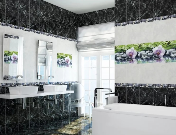 Широкая цветовая гамма хорошо известна покупателям, как и наличие в ассортименте плитки рисунков, орнаментов, графических, цветочных (флоральных), анималистических принтов, этнических мотивов, детской тематики, фирменных знаков и логотипов всемирно известных Домов моды, имеющих интерьерные линии.