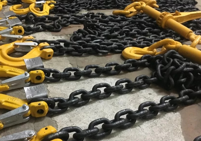 Главный элемент этого вида крепежной и такелажной продукции – круглозвеньевая цепь с различным диаметром каждого кольца. Противоположные концы цепей снабжаются различными крюками и защелками для крепления груза, существует также вид цепных строп, которые закольцованы на основном несущем элементе.